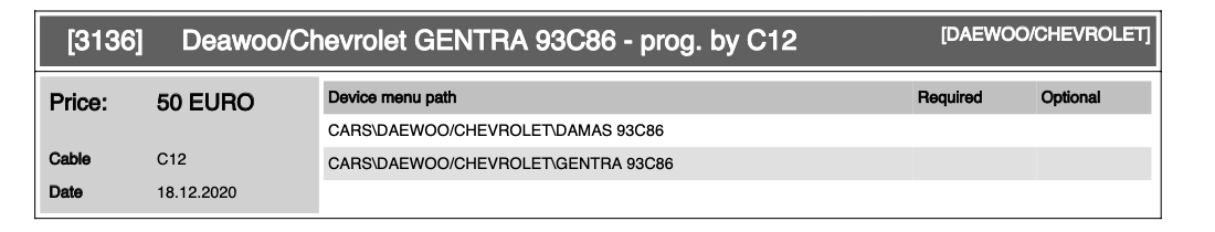 Deawoo/Chevrolet GENTRA 93C86 - prog. by C12